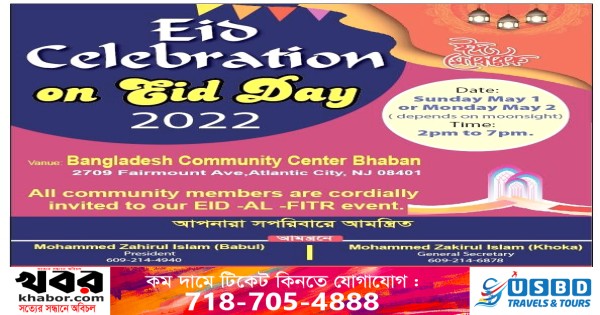 বাংলাদেশ এসোসিয়েশন অব সাউথ জার্সির সভাপতি জহিরুল ইসলাম বাবুল, সাধারন সম্পাদক জাকিরুল ইসলাম খোকা ও ট্রাষটি বোর্ড এর সভাপতি আব্দুর রফিক প্রবাসী বাংলাদেশিদেরকে ঈদ আনন্দ ভাগাভাগি করে নেওয়ার লক্ষ্যে সপরিবারে ‘ঈদ আনন্দ’ আয়োজনে অংশগ্রহন করার জন্য