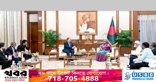 এ সময় প্রধানমন্ত্রীর বেসরকারি শিল্প ও বিনিয়োগবিষয়ক উপদেষ্টা সালমান ফজলুর রহমান এবং প্রধানমন্ত্রীর কার্যালয়ের সচিব মোহাম্মদ সালাহউদ্দিন উপস্থিত ছিলেন। সূত্র: বাসস