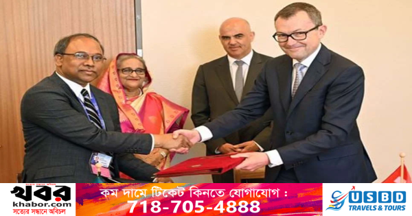 সুইজারল্যান্ড ও বাংলাদেশের স্থায়ী প্রতিনিধি জুর্গ লাউবার এবং সুফিউর রহমান নিজ নিজ দেশের পক্ষে ‘জ্ঞান বিনিময় ও দক্ষতা বৃদ্ধি’ শীর্ষক সমঝোতা স্মারকে স্বাক্ষর করেন।