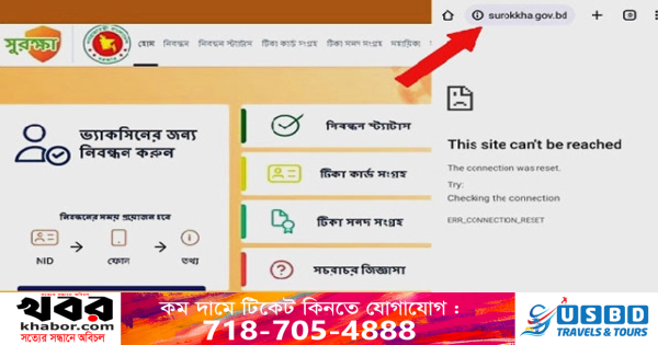 এদিকে সোমবার বিকালেও সুরক্ষার ওয়েবসাইটে প্রবেশ করা যায়নি। সুরক্ষা থেকে করোনার টিকা নিবন্ধন, টিকা প্রদানের তারিখ, পরবর্তী দিন ও টিকার সনদ প্রদান করা হয়। সূত্র জানায়, সাইটের আপগ্রেডেশনের কাজ চলমান থাকায় সাময়িক অসুবিধায় পড়ছে গ্রাহকরা।