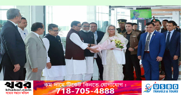 রবিবার ৩টা ৩৮ মিনিটে প্রধানমন্ত্রীকে বহনকারী বিমান বাংলাদেশ এয়ারলাইন্সের একটি ফ্লাইট হযরত শাহজালাল বিমানবন্দরে অবতরণ করে।