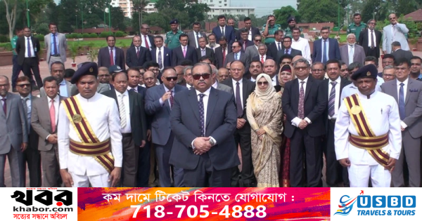 ঢাকা: সাভারের জাতীয় স্মৃতিসৌধে নবনিযুক্ত প্রধান বিচারপতি ওবায়দুল হাসান বীর শহীদদের প্রতি শ্রদ্ধা নিবেদন করেছেন। আজ মঙ্গলবার (২৬ সেপ্টেম্বর) দুপুর ২টা ২০ মিনিটে স্মৃতিসৌধের মূল বেদিতে ফুল দিয়ে শ্রদ্ধা জানান তিনি। শ্রদ্ধা নিবেদন শেষে তিনি সৌধের পরিদর্শন বইয়ে স্বাক্ষর করেন।