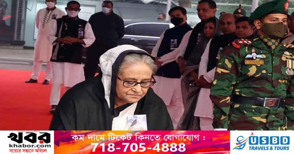 প্রথমে প্রধানমন্ত্রী হিসেবে বঙ্গবন্ধুর প্রতিকৃতিতে শ্রদ্ধা নিবেদন করেন শেখ হাসিনা। এ সময় সশস্ত্র বাহিনীর সদস্যরা গার্ড অব অনার প্রদান করে।