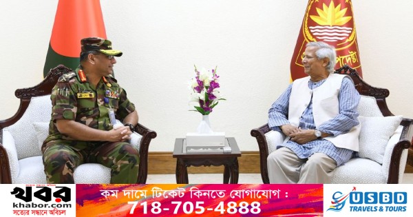 অন্তর্বর্তীকালীন সরকারের প্রধান উপদেষ্টা প্রফেসর ড. মুহাম্মদ ইউনূসের সঙ্গে সৌজন্য সাক্ষাৎ করেছেন সেনাবাহিনী প্রধান জেনারেল ওয়াকার-উজ-জামান, ওএসপি, এসজিপি, পিএসসি।