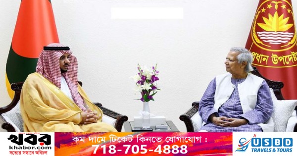 তিনি প্রধান উপদেষ্টাকে পবিত্র আল-কোরআন ও সৌদি আরবের জাতীয় পাখি বাজপাখির একটি রেপ্লিকা উপহার দেন।