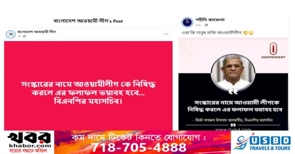 তবে ইনডিপেনডেন্ট টিভির ভেরিফায়েড ফেসবুক পেজ পর্যবেক্ষণ করে গত ২৮ ডিসেম্বর ‘সংস্কারের নামে অনির্বাচিত সরকারকে দেশ চালাতে দেওয়া উচিত না – মির্জা ফখরুল ইসলাম আলমগীর, বিএনপির মহাসচিব’ শীর্ষক শিরোনামে একটি ফটোকার্ড খুঁজে পাওয়া যায়। ফটোকার্ডটি পর্যালোচনা করে আলোচিত দাবিতে প্রচারিত ফটোকার্ডের ছবি ও গ্রাফিক্যাল ডিজাইনের সঙ্গে এর সাদৃশ্য খুঁজে পাওয়া যায়। শুধু আলোচিত ফটোকার্ডটিতে ‘সংস্কারের নামে অনির্বাচিত সরকারকে দেশ চালাতে দেওয়া উচিত না’ শীর্ষক বাক্যের পরিবর্তে ‘সংস্কারের নামে আওয়ামী লীগকে নিষিদ্ধ করলে এর ফলাফল ভয়াবহ হবে’ শীর্ষক বাক্য লেখা হয়েছে। এবং ফটোকর্ডটির রংও পরিবর্তন করা হয়েছে।