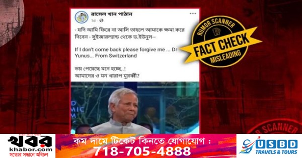 প্রতিবেদনে বলা হয়, গত ২৩ জানুয়ারি ড. ইউনূস বিশ্ব অর্থনৈতিক ফোরামের প্রতিষ্ঠাতা ক্লাউস শোয়াবের সঙ্গে বৈঠকে বাংলাদেশের নানা বিষয় ও জুলাই গণ-অভ্যুত্থানে তরুণদের আন্দোলনে সম্পৃক্ততার কথা বলতে গিয়ে আন্দোলনে যাওয়া এক কিশোর তার মাকে লেখা চিঠির বিষয়ে ‘কোট’ করে বলেন, “if I don’t come back please forgive me”। তার আলোচনার এই অংশটিই তার নিজস্ব মন্তব্য দাবিতে প্রচার করা হয়েছে।