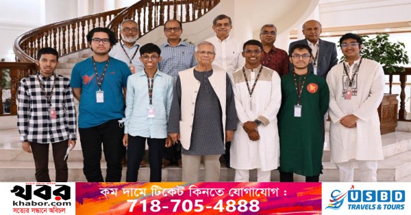 অন্তর্বর্তী সরকারের প্রধান উপদেষ্টা অধ্যাপক মুহাম্মদ ইউনূসের সঙ্গে সাক্ষাৎ করেছেন আন্তর্জাতিক গণিত ও জীববিজ্ঞান অলিম্পিয়াডে পদকজয়ী ছয় শিক্ষার্থী।