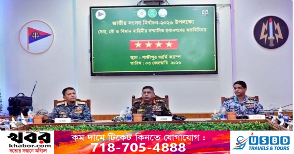 ত্রয়োদশ জাতীয় সংসদ নির্বাচন ও গণভোট-২০২৬ উপলক্ষে সেনা, নৌ ও বিমান বাহিনী প্রধানরা গাজীপুর জেলা পরিদর্শনে গিয়েছেন। মঙ্গলবার (৩ ফেব্রুয়ারি) সেনাবাহিনী প্রধান জেনারেল ওয়াকার-উজ-জামান, নৌবাহিনী প্রধান অ্যাডমিরাল এম নাজমুল হাসান এবং বিমানবাহিনী প্রধান এয়ার চিফ মার্শাল হাসান মাহমুদ খাঁন পরিদর্শন শেষে এক মতবিনিময়সভায় অংশ নেন।