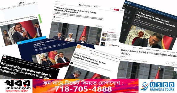 বার্তা সংস্থা রয়টার্স তাদের সংবাদের শিরোনাম দিয়েছে, ‘নির্বাচনে নিরঙ্কুশ জয়ের পর বাংলাদেশের প্রধানমন্ত্রী হিসেবে শপথ নিলেন তারেক রহমান’।