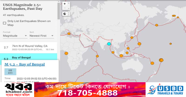 ঢাকা: রাজধানী ঢাকাসহ দেশের বিভিন্ন স্থানে ৫ দশমিক ২ মাত্রার ভূমিকম্প অনুভূত হয়েছে। মার্কিন ভূতাত্ত্বিক জরিপ সংস্থার (ইউএসজিএস) ওয়েবসাইট থেকে এ তথ্য পাওয়া গেছে।