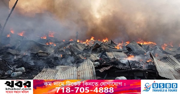 দীর্ঘ তিন ঘণ্টার বেশি সময় পেরিয়ে গেলেও কোনোভাবেই নিয়ন্ত্রণে আনা যাচ্ছে না বঙ্গবাজরের ভয়াবহ আগুন। মঙ্গলবার সকাল ৬টা ১০ মিনিটে লাগা আগুন নিয়ন্ত্রণে ৫০ ইউনিট কাজ করছে। বঙ্গবাজারের টিনশেড দোতলা মার্কেট পুরোপুরি ধ্বংসস্তূপে পরিণত হয়েছে। ধ্বংসস্তূপের মধ্যে এখনো দাউ দাউ করে জ্বলছে আগুনের লেলিহান শিখা।
