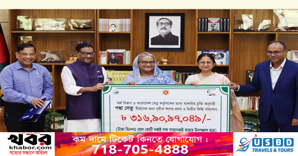 সড়ক পরিবহন ও সেতুমন্ত্রী ওবায়দুল কাদের দুই কিস্তি পরিশোধের চেক প্রধানমন্ত্রী শেখ হাসিনার হাতে তুলে দেন। এ সময় অর্থ সচিব ও সেতু সচিবও উপস্থিত ছিলেন।