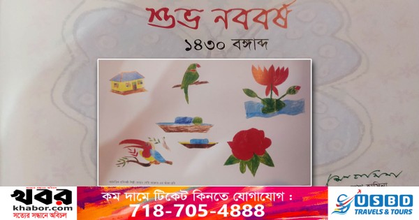 বাংলা নববর্ষ ১৪৩০ উপলক্ষ্যে শুভেচ্ছা জানিয়েছেন প্রধানমন্ত্রী শেখ হাসিনা। এবারের শুভেচ্ছা কার্ডে বহুমাত্রিক প্রতিবন্ধী শিল্পী মোছা. সেমি আক্তারের আঁকা সাতটি ছবি স্থান পেয়েছে। প্রধানমন্ত্রী শেখ হাসিনার স্বাক্ষরিত শুভেচ্ছা কার্ডে ‘শুভ নববর্ষ ১৪৩০ বঙ্গাব্দ’ জানানো হয়েছে।