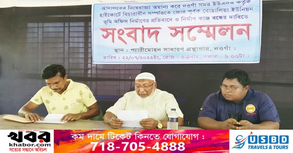 লিখিত আরও বলা হয়, সম্প্রতি নওগঁাঁ সদর উপজেলা প্রশাসন ওই জমিতে ভূমি অফিস নির্মাণের তোড়জোড় শুরু করলে আকবর আলী হাইকোর্টে একটি রিট পিটিশন দায়ের করেন। আদালত ওই রিটের শুনানি নিয়ে চলতি বছরের ৯ মার্চ বিবদমান জমিটি খাস খতিয়ানভুক্ত হিসেবে অন্তর্ভুক্ত করা কেন অবৈধ হবে না তা জানতে চেয়ে রুল জারি করেন। চার সপ্তাহের মধ্যে নওগাঁ জেলা প্রশাসক, নওগাঁ সদর উপজেলা নির্বাহী কর্মকর্তা (ইউএনও) সহ বিবাদীদের রুলের জবাব দিতে আদেশ দেন। কিন্তু বিবাদীরা চার সপ্তাহ পার হলেও সেই রুলের জবাব না দিয়ে আদালতের নিদের্শ উপেক্ষা করে বিবদমান জমিতে গত ১৮ জুলাই থেকে বোয়ালিয়া ইউনিয়ন ভূমি অফিস নির্মাণের কাজ শুরু করেন।