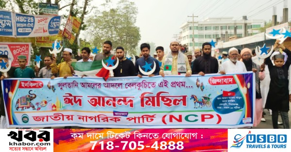সিরাজগঞ্জের বেলকুচিতে বিভিন্ন শ্রেণি-পেশার মানুষের অংশগ্রহণে সুলতানি আমলের আদলে ঈদ আনন্দ মিছিল অনুষ্ঠিত হয়েছে। সোমবার (৩১ মার্চ) সকাল ১০টার দিকে বেলকুচি পৌর শহরের আল-আমান বাহেলা খাতুন জামে মসজিদের সামনে থেকে জাতীয় নাগরিক পাটির (এনসিপি) ব্যানারে এ আনন্দ মিছিল হয়।