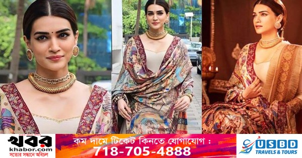 কৃতী স্যাননের গোটা ওড়না জুড়ে রাম-সীতা। রামায়ণ-এর নানা টুকরো টুকরো কাহিনি তুলে ধরা হয়েছে রঙ-বেরঙের সুতো দিয়ে নকশা কেটে। যে ওড়না দেখে তেলেবেগুনে জ্বলে উঠেছেন উগ্র হিন্দুত্ববাদীদের একাংশ, যা ডিজাইন করতে ঘাম ছুটেছিল কারিগরদের। টানা ২ বছর ধরে এ ‘অযোধ্যা টেলস’ ওড়না ডিজাইন করেছেন শাজা লাইফস্টাইল-এর দশজন দক্ষ কারুশিল্পী। তার সঙ্গে পরনে বেইজ রঙের আনারকলি সালোয়ার ডিজাইন করা ‘সুকৃতী অ্যান্ড আকৃতি অফিশিয়াল’-এর।