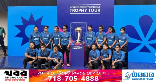 বিশ্বকাপ ট্রফির সঙ্গে ছবি তুলবার পরেও উচ্ছ্বাস ঝরলো নারী দলের অধিনায়কের কণ্ঠে, ‘আগে কখনো সামনাসামনি দেখার সুযোগ হয়নি। ধন্যবাদ বিসিবি ও আমাদের নারী বিভাগকে, আমাদের এ সুযোগটা দেওয়ার জন্য এবং অনেক তরুণ খেলোয়াড় ছিল তাদের আসলে স্বপ্নের মতো ছিল বিশ্বকাপ ট্রফিকে সামনে থেকে দেখা।’
