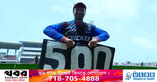 সাকিবের আগে টি-টোয়েন্টিতে ৫০০ উইকেটের মাইফলক ছুঁয়েছেন চারজন। তারা হলেন-আফগানিস্তানের রশিদ খান (৬৬০), ওয়েস্ট ইন্ডিজের ডোয়াইন ব্রাভো (৬৩১) ও সুনিল নারিন (৫৯০) এবং দক্ষিণ আফ্রিকার ইমরান তাহির (৫৫৪)।