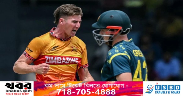 টি-টোয়েন্টি বিশ্বকাপে দুর্দান্ত পারফরম্যান্স দেখিয়ে শক্তিশালী অস্ট্রেলিয়াকে ২৩ রানে হারিয়েছে জিম্বাবুয়ে। শুক্রবার কলম্বোর আর প্রেমাদাসা স্টেডিয়ামে অনুষ্ঠিত ম্যাচে এই চমক দেখায় তারা। এটি ছিল গ্রুপ পর্বে জিম্বাবুয়ের দ্বিতীয় জয়।