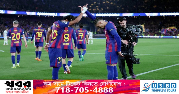প্রথমার্ধের শেষ মুহূর্তে ভিএআর-এর সহায়তায় পাওয়া পেনাল্টি থেকে গোল করে লামিনে ইয়ামাল বার্সেলোনাকে ৩-২ ব্যবধানে এগিয়ে রাখেন।