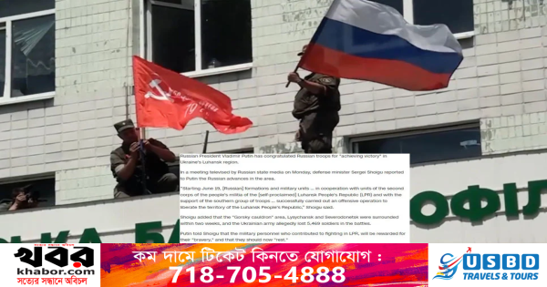 রাশিয়ার প্রেসিডেন্ট ভ্লাদিমির পুতিন ইউক্রেনের লুহানস্ক প্রদেশের সর্বশেষ প্রধান ইউক্রেনীয়-নিয়ন্ত্রিত শহর লিসিচানস্ক দখলে অংশ নেওয়া রুশ সেনাদের ভূয়সী প্রশংসা করেছেন।