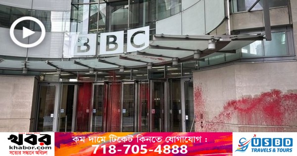 ফিলিস্তিনপন্থী অ্যাক্টিভিস্টরা ইসরায়েল ও গাজার যুদ্ধ নিয়ে ‘পক্ষপাতদুষ্ট’ প্রতিবেদন প্রকাশের প্রতিবাদে লন্ডনে বিবিসির সদর দপ্তরে লাল রং ছড়িয়ে দিয়েছে।