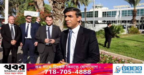 ব্রিটেনের প্রধানমন্ত্রী ঋষি সুনাক ইসরায়েলে পৌঁছেছেন আজ। মার্কিন প্রেসিডেন্ট জো বাইডেনের সফরের একদিন পরই ইসরায়েলে পৌঁছেছেন ব্রিটিশ প্রধানমন্ত্রী ঋষি সুনাক। ইসরায়েলে পৌঁছে তিনি ৭ অক্টোবর হামাসের ‘ভয়াবহ সন্ত্রাসী’ হামলার নিন্দা করেন এবং বলেছেন, যুক্তরাজ্য ইসরায়েলের পাশে আছে।