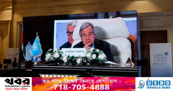 যুদ্ধের তৃতীয় সপ্তাহে কায়রোতে একটি শান্তি সম্মেলনে ভাষণ দিতে গিয়ে গুতেরেস আরো বলেন, ২.৪ মিলিয়ন মানুষের ছোট্ট ফিলিস্তিনি ছিটমহল ‘একটি মানবিক বিপর্যয়ের’ মধ্য দিয়ে যাচ্ছে। সেখানে হাজার হাজার মানুষ মারা গেছে এবং এক মিলিয়নেরও বেশি মানুষ বাস্তুচ্যুত হয়েছে।