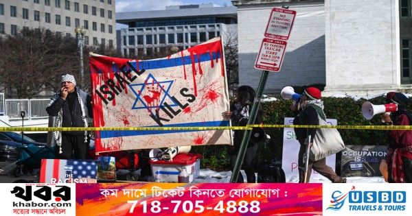 গাজা ইস্যুতে মার্কিন নীতির প্রতিবাদে ওয়াশিংটন ডিসিতে পররাষ্ট্র দপ্তরের সামনে বিক্ষোভ হয় স্থানীয় সময় সোমবার। এর মধ্যেই পররাষ্ট্রনীতি নিয়ে সর্বশেষ ভাষণ দিতে পররাষ্ট্র দপ্তরে যান বিদায়ী প্রেসিডেন্ট জো বাইডেন। তখন তাকে দেখে যুদ্ধাপরাধী বলে স্লোগান দেন বিক্ষোভকারীরা।