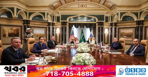 এদিকে বুধবার সকালে রাশিয়ার সংবাদপত্রগুলোর শিরোনাম দখল করেছে এক ছবি—রিয়াদে রুশ ও মার্কিন শীর্ষ কর্মকর্তাদের আলোচনার টেবিলে বসা দৃশ্য।