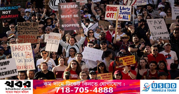 ট্রাম্পবিরোধী এ বিক্ষোভের জোয়ার যুক্তরাষ্ট্রের ৫০টি অঙ্গরাজ্য ছাড়াও কানাডা, ব্রিটেন, ফ্রান্স, জার্মানি, মেক্সিকো ও পর্তুগালেও ছড়িয়ে পড়েছে। যুক্তরাজ্যের লন্ডনে ব্যানার হাতে জড়ো হয়েছেন প্রায় ২০০ প্রতিবাদকারী, যাদের অধিকাংশই যুক্তরাষ্ট্রের নাগরিক। প্রেসিডেন্ট ট্রাম্পের নতুন শুল্কনীতি, যা বিশ্ব বাণিজ্যের ওপর একতরফা হস্তক্ষেপ বলে মনে করছেন তারা।