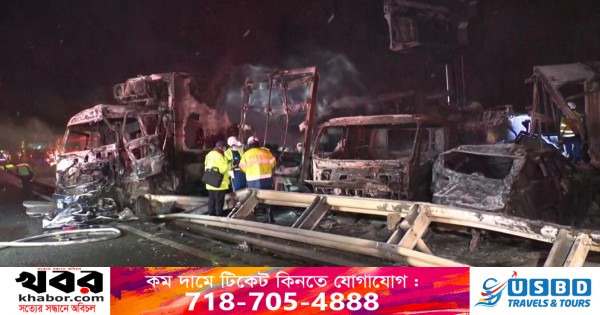 দুর্ঘটনার এক প্রান্তে আগুন ছড়িয়ে পড়ে, এতে ডজনখানেক যানবাহন পুড়ে যায়। প্রায় সাত ঘণ্টা পর আগুন নিয়ন্ত্রণে আনেন দমকলকর্মীরা। পুলিশ বলেছে, আগুনে কেউ আহত হননি এবং প্রায় সাত ঘণ্টা পর আগুন নিয়ন্ত্রণে আনা হয়েছে।