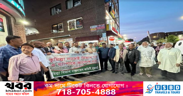 নিউইয়র্ক: “কুমিল্লা নামেই বিভাগ চাই, এ ব্যাপারে আপোষ নাই” এই শ্লোগানে নিউইয়র্কের জ্যাকসন হাইটসে মানববন্ধন অনুষ্ঠিত হয়েছে। ২০ জুন মংগলবার সন্ধ্যায় নিউইয়র্কের বাংলাদেশী অধ্যুষিত জ্যাকসন হাইটস নবান্ন’র সামনে অনুষ্ঠিত মানববন্ধনে বক্তব্য রাখেন যুক্তরাষ্ট্রে কুমিল্লা বিভাগ বাস্তবায়ন কমিটির আহবায়ক সারোয়ার খান বাবু, সদস্য সচিব সাংবাদিক এসএম সোলায়মান, প্রধান সমন্বয়ক মামুন মিয়াজী, যুগ্ন সমন্বয়ক মিয়া মোহাম্মদ দুলালসহ নিউইয়র্কে বসবাসকারী বৃহত্তর কুমিল্লার নেতৃবৃন্দ।