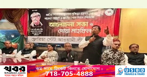জাতির পিতা বঙ্গবন্ধু শেখ মুজিবুর রহমানের ৪৮তম শাহাদাত বার্ষিকী ও জাতীয় শোক দিবস উপলক্ষে ফ্লোরিডা স্টেট আওয়ামী লীগের উদ্যোগে রবিবার সন্ধ্যায় ফ্লোরিডায় ওয়েস্ট পামবীচে একটি রেস্টুরেন্টের মিলনায়তনে এক আলোচনা সভা ও দোয়া মাহফিল অনুষ্ঠিত হয়।