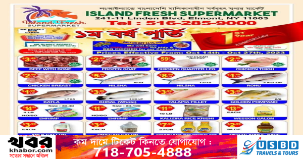 নিউইয়র্কে আইল্যান্ড ফ্রেস সুপারমার্কেট এর প্রথম বর্ষপূর্তি উপলক্ষ্যে বিশেষ ছাড়