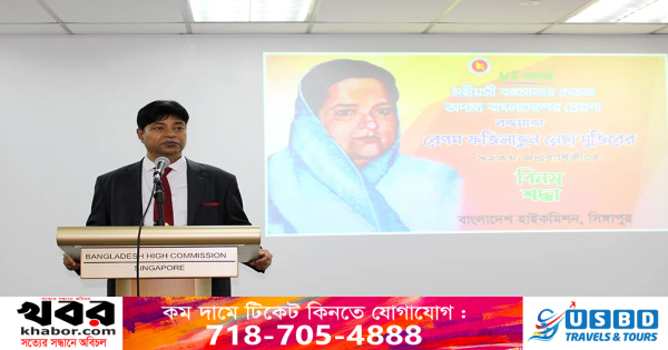 জাতির পিতা বঙ্গবন্ধু শেখ মুজিবুর রহমানের সহধর্মিণী বঙ্গমাতা বেগম ফজিলাতুন নেছা মুজিরের ৯২তম জন্মবার্ষিকী পালন করেছে সিঙ্গাপুরস্থ বাংলাদেশ হাইকমিশন। সোমবার অপরাহ্ণে বঙ্গমাতার জন্মবার্ষিকী উপলক্ষে হাইকমিশনে এক বিশেষ অনুষ্ঠান আয়োজন করা হয়।