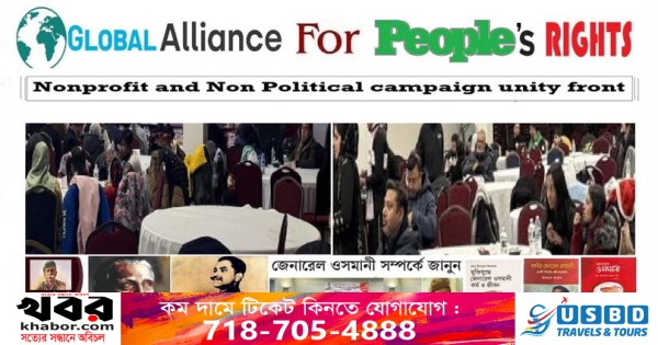 গ্লোবাল এলায়েন্স ফর পিপলস রাটস আমেরিকা রিজিয়নের উদ্যোগে আয়োজিত আলোচনা সভায় বক্তব্য রাখেন গ্লোবাল এলায়েন্স ফর পিপলস রাটস আমেরিকা রিজিয়নের প্রধান , এমজি-৫ এর সিইও , ইউসিবি নিউজের সম্পাদক এমজেড ফয়সাল এর সভাপতিত্বে প্রফেসর জাফর আলী , ইউসিবি ২৪ এর প্রকাশক ডাক্তার এইচ এম ফখরুল ইসলাম, ইউএস বাংলাদেশ এডুকেশন এন্ড কালচারাল ডেভোলাপমেন্ট এর উপদেষ্টা হাজি আনোয়ার হোসেন লিটন , গ্লোবাল এলায়েন্স ফর পিপলস রাটস ব্রিটেন রিজিয়নের প্রধান হুমায়ুন কবির রুমেল ,অধ্যাপক জিয়া উদ্দিন , প্রফেসর নজরুল ইসলাম প্রমুখ।