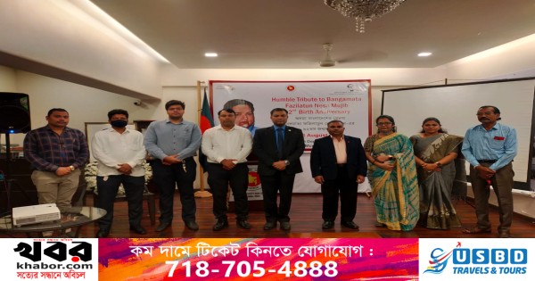 বাংলাদেশ উপ-হাইকমিশন মুম্বাই-এ আজ বঙ্গমাতা শেখ ফজিলাতুন নেছা মুজিব-এর ৯২তম জন্মবার্ষিকী যথাযথ মর্যাদায় পালন করা হয়। এ উদ্দেশ্যে উপ-হাইকমিশন প্রাঙ্গনে তাঁর প্রতিকৃতিতে পুষ্পস্তবক অর্পন, বিশেষ আলোচনাসভা, প্রামাণ্যচিত্র প্রদর্শণ এবং দোয়া ও মোনাজাতের আয়োজন করা হয়।
