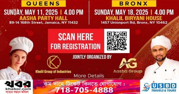 একই সঙ্গে হোম শেফদেরও এতে অংশগ্রহণের সুযোগ থাকবে। এজন্য মূল পর্ব এওয়ার্ড অনুষ্ঠানের আগে নিউইয়র্কের কুইন্স ও ব্রঙ্কসে দুটি প্রতিযোগিতার আয়োজন করা হচ্ছে। বাসা-বাড়িতে যারা ক্যাটারিং করেন তাদের মধ্যে তিনটি ক্যাটাগরিতে তিনজনকে প্রতিযোগিতার মাধ্যমে বিজয়ী ঘোষণা করে বেস্ট হোম শেফ এওয়ার্ড দেওয়া হবে। আগামী ১১ মে রোববার জ্যামাইকার কুইন্সে আশা হোম কেয়ার এবং ১৮ মে রোববার ব্রঙ্কসের খলিল বিরিয়ানিতে হোম শেফদের প্রতিযোগিতা অনুষ্ঠিত হবে। এজন্য অনলাইনে রেজিস্ট্রেশন শুরু হয়েছে। এছাড়াও +১৯১৭-৭২২-৪৭০৩ নম্বরে যোগাযোগ করে বিস্তারিত জানা যাবে।