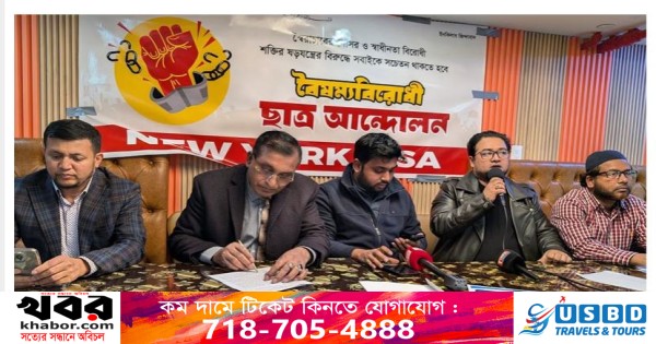 বৈষম্য বিরোধী ছাত্র আন্দোলন, নিউইয়র্ক-এর অন্যতম সমন্বয়ক আব্দুল কাদেরের সঞ্চালনায় সংবাদ সম্মেলনে প্রধান অতিথি ছিলেন বিশিষ্ট রাজনীতিক ও ব্যবসায়ী এবং জেবিবিএ’র সভাপতি গিয়াস আহমেদ। সংবাদ সম্মেলনে লিখিত বক্তব্য পাঠ করেন আরেক সমন্বয়ক কাজী মোহাম্মদ হাসান সিদ্দিকী। বক্তব্য রাখেন সমন্বয়ক দেলোয়ার হোসেন শিপন, ফাহাদ হোসেন প্রমুখ।