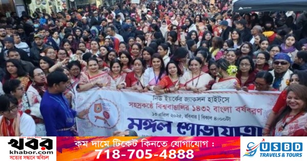 শিব্বীর আহমেদঃ ১৪৩২ বঙ্গাব্দ স্মরণকালের বিস্ময় নিয়ে আবিভূর্ত হলো নিউইয়র্ক শহরে। দুই দিনের বর্ষবরণ উৎসব বাঙালি জাতির পরম আরাধ্য ও চরম প্রাপ্তির বৈকুণ্ঠময় অনুভবের স্মারক হয়ে থাকল। যেন একখণ্ড বাংলাদেশ বিশ্ববাসীকে জানান দিল আমাদের জীবনও আনন্দময়। ইতিহাস ও ঐতিহ্যে সমৃদ্ধ আমাদের বাঙালি সংস্কৃতি। জ্যাকসন হাইটসে ৫০হাজার মানুষের জমায়েত মঙ্গলশোভাযাত্রাকে করে তুলেছিল নীল আকাশে সাদা মেঘের পেখম তুলে ধাবমান বলাকার প্রাণিত আলোকশিখা। তবে আগের দিন বৃষ্টিস্নাত দিনে টাইমস স্কয়ারও হয়ে উঠছিল বৈশাখের রঙিন দিবসের গীতাঞ্জলি।