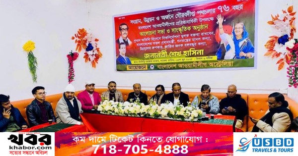 গত বৃহস্পতিবার,২৬শে জুন ২০২৫ ,সিডনির লাকেম্বার ধাঁণসিড়ি রেস্তোরার হলরুমে বাংলাদেশ আওয়ামীলীগ অস্ট্রেলিয়ার উদ্যোগে বিশিষ্ট শিক্ষাবিদ, কলামিস্ট ও লেখক ড. কাইউম পারভেজ এর সভাপতিত্বে ও মাকসুদুর রহমান সুমন চৌধুরীর সঞ্চালনায় বাংলাদেশ আওয়ামীলীগের ৭৬তম প্রতিষ্ঠাবার্ষিকী উপলক্ষে আলোচনা সভা অনুষ্ঠিত হয়।