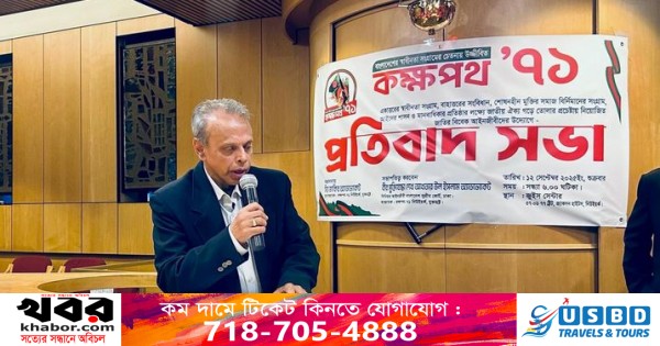 প্রিয় মাতৃভূমির বর্তমান অবস্থার পরিপ্রেক্ষিতে মুক্তিযুদ্ধ, ৭২ র সংবিধান, আইনের শাসনের প্রতিষ্ঠার ও আদালত এবং আইনজীবীদের মর্যাদা রক্ষার্থে- কক্ষপথ -৭১ নিউইর্য়ক, যুক্তরাষ্ট্রের উদ্যদে এক প্রতিবাদ সমাবেশ আনুষ্ঠিত হয় গত ১২ সেপ্টেম্বর ২০২৫,শুক্রবার, সন্ধ্যা সাড়ে ৭টায় নিউইয়র্কের বাংগালি অধ্যশিত জুইস সেন্টার । ।খবর আইবিএননিউজ ।বাংলাদেশের স্বাধীনতা সংগ্রামের চেতনায় উজ্জীবিত “ কক্ষপথ’৭১” এর প্রবাসীসআইনজীদের এই প্রতিবাদ সমাবেশের কক্ষপথ-৭১ মূল দাবী, একাত্তরের স্বাধীনতা সংগ্রাম, বায়াত্তরের সংবিধান সুরক্ষা,শোষন মুক্ত সমাজ প্রতিষ্টা আইনের শাসন ও মানবাধিকার প্রতিষ্টা, বাংলাদেশ সংবিধানের মূলনীতি,বাংগালি জাতীয়তাবাদ, সমাজতন্ত্র,গনতন্ত্র ও ধর্মনিরপেক্ষতা পুন- প্রতিষ্ঠার লক্ষ্যে উক্ত প্রতিবাদ সভায় সভাপত্বি করেন সংগঠনের আহ্বায়ক বীর মুক্তিযোব্ধা অ্যাডভোকেট শেখ আখতার উল ইসলাম এবং যুগ্ম আহ্বায়ক অ্যাডভোকেট মিয়া জাকির এর পরিচালনায় অনুষ্ঠিত হয় ।