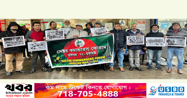 একাত্তরের মুক্তিযুদ্ধে পাকিস্তানী বাহিনী বাংলাদেশে যে গণহত্যা চালিয়েছে তার আন্তর্জাতিক স্বীকৃতি দাবিতে নিউইয়র্ক সিটির জ্যাকসন হাইটসে ডাইভার্সিটি প্লাজায় ৩ অক্টোবর র্যালি অনুষ্ঠিত হলো ‘সেক্টর কমান্ডারস ফোরাম-মুক্তিযুদ্ধ’৭১’র যুক্তরাষ্ট্র ইউনিটের উদ্যোগে।