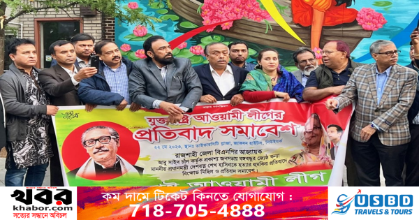 শেখ হাসিনাকে হত্যার হুমকি প্রদানকারী বিএনপি নেতার দৃষ্টান্তমূলক শাস্তি দাবিতে নিউ ইয়র্কে যুবলীগের র্যালি। ছবি: বাংলাদেশ প্রতিদিন
