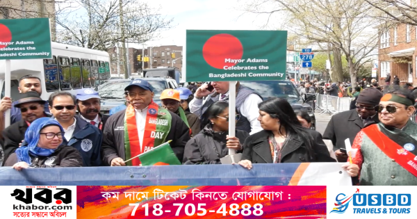 যুক্তরাষ্ট্রের মাটিতে নিজেদের অবস্থানকে জানান দিতে ১৩ এপ্রিল রোববার যুক্তরাষ্ট্রের নিউ ইয়র্কে হয়ে গেল ‘বাংলাদেশ ডে প্যারেড’।জ্যাকসন হাইটসের ব্যস্ততম রাস্তা বন্ধ করে ৬৫ প্রবাসী সংগঠনের হাজার হাজার সদস্য বাংলাদেশ স্ট্রিটের পাশ দিয়ে প্যারেড নিয়ে যায় ৮৭ স্ট্রিটে। লাল-সবুজের পতাকার পাশাপাশি যুক্তরাষ্ট্রের পতাকা হাতে নিয়ে তরুণ-তরুণীরা নেচে-গেয়ে আর বিজয় ধ্বনিতে গোটা এলাকা প্রকম্পিত করেন। সকাল ১১টা থেকে বেলা ৩টা পর্যন্ত থমকে ছিল কুইন্সের এলাকাটি। ভিনদেশিরা বাঙালিদের প্যারেডকে অভিবাদন জানান। সেখানে শুভেচ্ছা বক্তব্য দেন সিটি মেয়র এরিক এডামস, স্টেট সিনেটর জন ল্যু, স্টেট অ্যাসেম্বলিম্যান জোহরান মামদানি। ‘হিউম্যানিটি এম্পাওয়ারমেন্ট রাইটস ফাউন্ডেশন’র সহযোগিতায় এ প্যারেড আয়োজন করে ‘বাংলাদেশ সোসাইটি’।