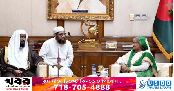প্রধানমন্ত্রী শেখ হাসিনার সঙ্গে সৌজন্য সাক্ষাৎ করেছেন সৌদি আরবের মদিনার মসজিদে নববীর ইমাম শেখ ড. আবদুল্লাহ বিন আবদুর রহমান আল-বুয়াজান।