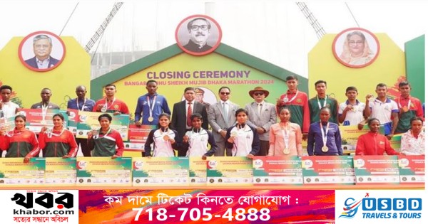 বাংলাদেশ সেনাবাহিনীর সার্বিক তত্ত্বাবধানে 'বঙ্গবন্ধু শেখ মুজিব ঢাকা ম্যারাথন-২০২৪' অনুষ্ঠিত হয়েছে। শুক্রবার (২৬ জানুয়ারি) ঢাকাস্থ বানৌজা শেখ মুজিব ঘাঁটিতে অনুষ্ঠিত এ ম্যারাথনের সমাপনীতে প্রধান অতিথি হিসেবে উপস্থিত থেকে বিজয়ীদের মাঝে পুরস্কার বিতরণ করেন বাংলাদেশ অলিম্পিক অ্যাসোসিয়েশনের সভাপতি ও সেনাবাহিনী প্রধান জেনারেল এস এম শফিউদ্দিন আহমেদ।