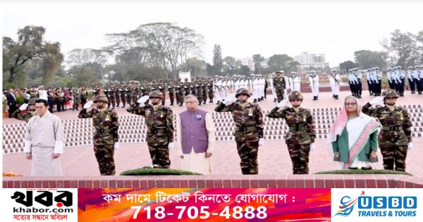 মহান স্বাধীনতা দিবস ও জাতীয় দিবস উপলক্ষে সাভারে জাতীয় স্মৃতিসৌধে পুষ্পস্তবক অর্পণ করে বীর শহীদদের প্রতি গভীর শ্রদ্ধা জানিয়েছেন রাষ্ট্রপতি মো. সাহাবুদ্দিন ও প্রধানমন্ত্রী শেখ হাসিনা এবং সফররত ভুটানের রাজা জিগমে খেসার নামগিয়েল ওয়াংচুক।